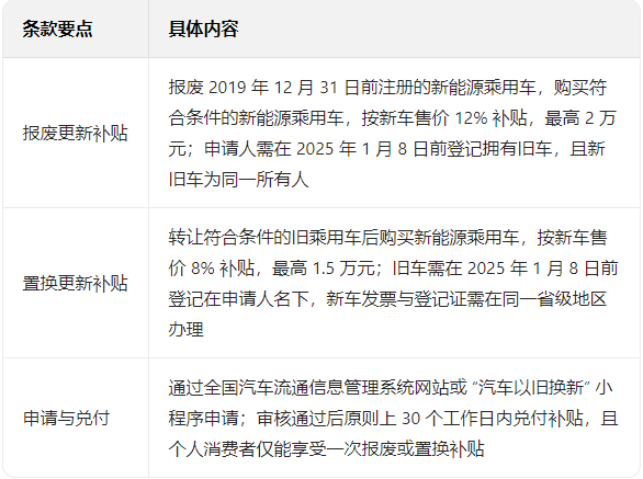 第二:新能源车的置换补贴按照车价的8%来算,上限1.5万元;