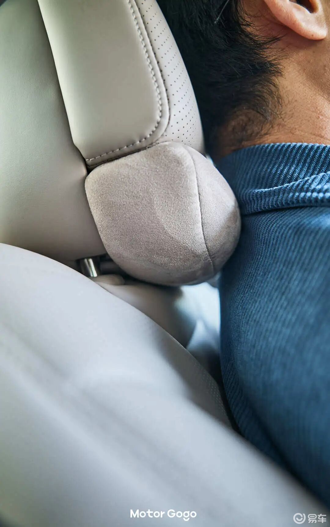 不得不说昊铂A800 这台车是花心思了,除了前面提到的「双隐藏遮阳帘」、「能变形的后排」之外,这台车竟然真的专门在座椅头枕下方增加了一个「颈部按摩」。