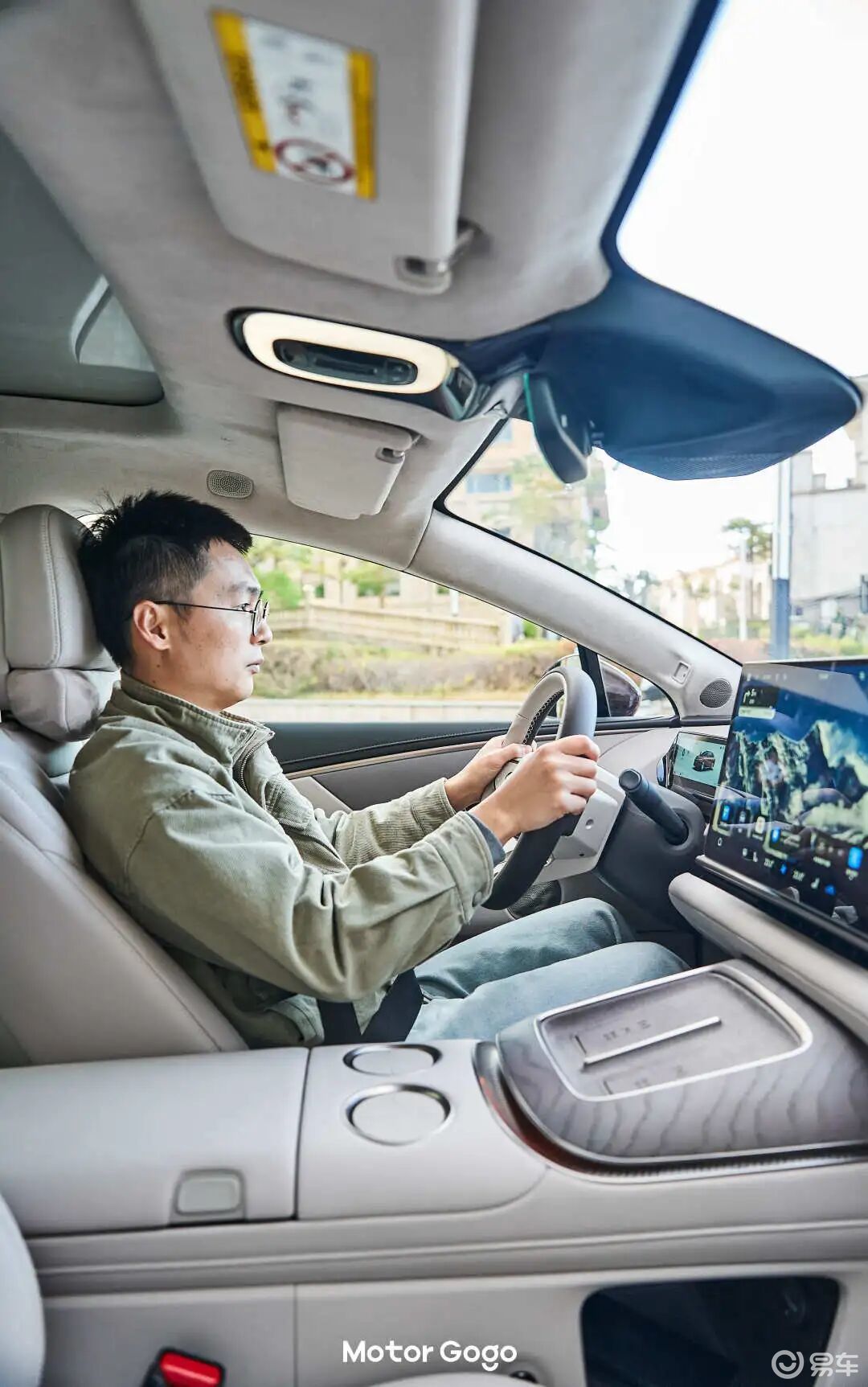 视觉上看着很炫酷,但同时带来一个问题是停车后,大灯切换时内部翻转的电机声音和振动还是有些明显,当然也有可能是我们体验的这台工程车问题。