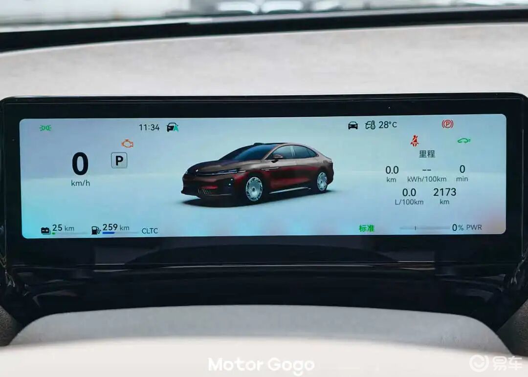 ○ 出发前表显纯电续航18km