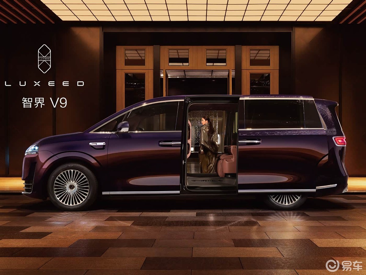 智界V9外观延续了鸿蒙智行家族的设计风格,前脸采用贯穿式LED日行灯,将首发全新一代DLP投影大灯+动态迎宾光毯组合,并可自定义迎宾灯语。车身侧面,智界V9采用了诸多的镀铬元素加以修饰,包括侧窗装饰条、外门把手、外后视镜支架、侧视摄像头装饰罩以及侧裙等处。此外,新车搭载了密辐轮圈,并采用了侧滑门设计。车尾配备晶钻点缀的贯穿式尾灯,并在尾灯轮廓以及后包围底部也应用了贯穿式镀铬饰条,而尾灯底部两端则有辅助驾驶“小蓝灯”。根据申报信息,智界V9长宽高分别为5359/2009/1879(1859)毫米,轴距为3250毫米,采用7座布局。