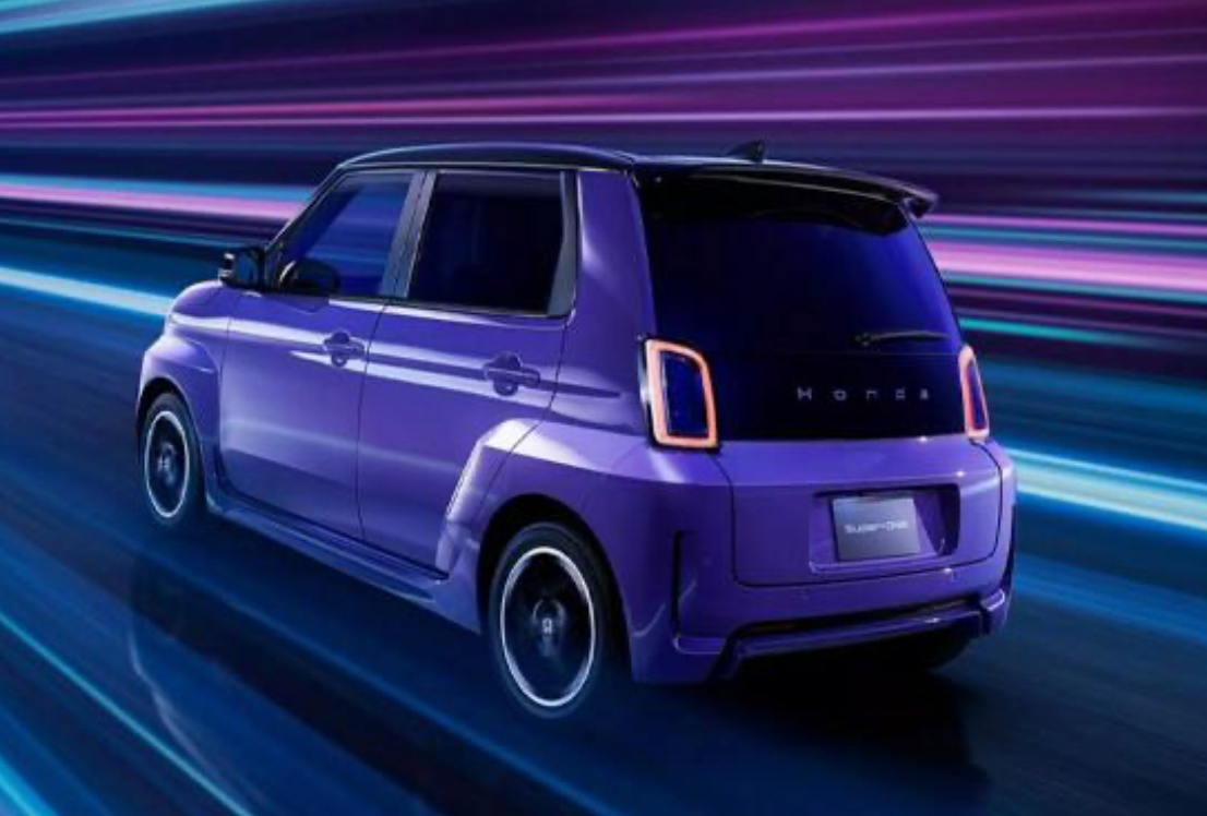 最“骚”的是配色。本田给这车搞了个专属颜色,叫“Boost Violet Pearl(闪电紫珠光)”,灵感来自划破夜空的闪电。这颜色只有Super-ONE能选,走在路上基本不用担心撞衫 。车尾还有个扰流尾翼,运动感算是从头武装到脚了 。