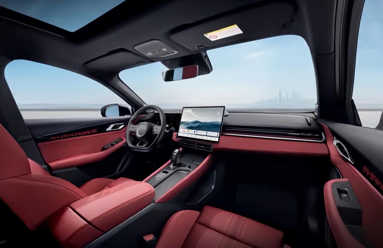 内饰部分,大尾翼版将标配“炽热红”内饰主题。座椅、门板以及中控台等区域采用大面积红色皮质材料包裹,并搭配了碳纤维纹理饰板与缝线工艺。新车依旧配备三辐式平底运动方向盘+全液晶仪表盘以及中控多媒体大屏,中控通道区域还配备了电子换挡杆。