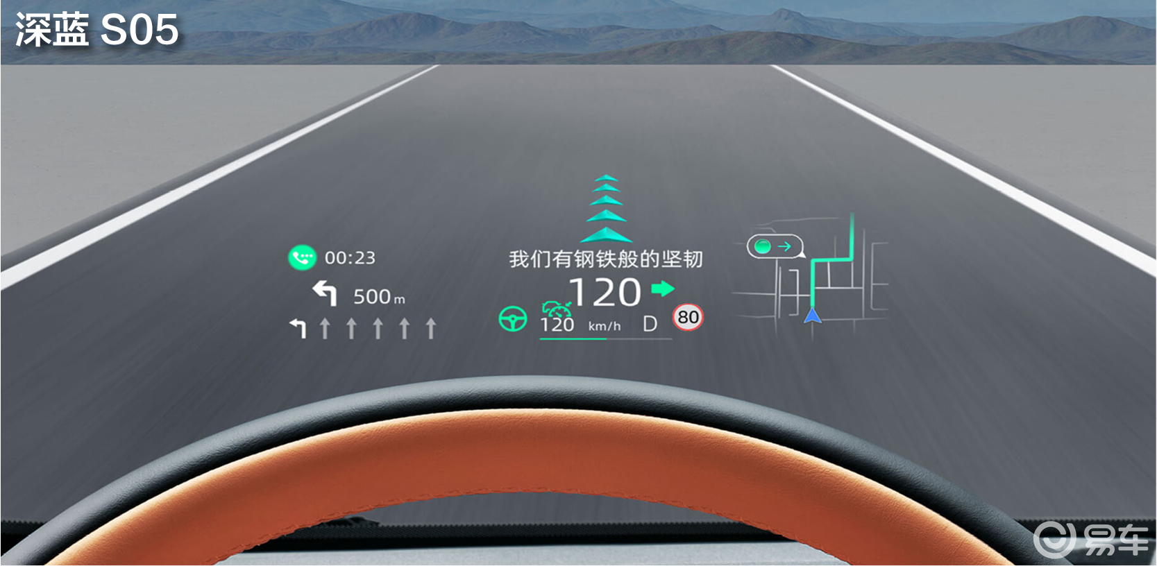 在“花活”方面,深蓝S05配有智趣光影大灯,能在遇到窄路的时候在车前投射出两条与车身等宽的边线,提前预判是否能安全通过,还能结合地图将变道、方向等导航信息投射到车前,辅助夜间行车,对新老司机都有帮助。
