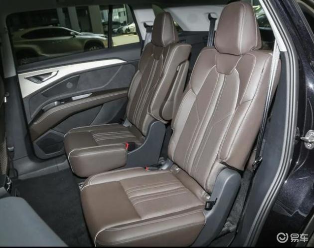 奥迪Q5 e-tron的外观采用了诸多燃油车的设计元素,因此第一眼看起来更像是燃油车。内凹的腰线与车门相匹配,配合外包围,侧面的运动感十分突出。尾部三角窗附近加入了镀铬铭牌,标配车顶行李架和20英寸轮毂,使侧面轮廓显得更加高大且修长。这种短悬长轴的设计不仅提升了车辆的动态表现,也使线条更加流畅自然。贯穿式的尾灯具有很高的辨识度,虽然尾部设计较为保守,偏向成熟风格,但依然保留了强烈的商务感,给人一种稳重的感觉。作为一款六座SUV,Q5 e-tron的空间优势明显,车身尺寸为4876*1860*1675毫米,轴距为2965毫米。