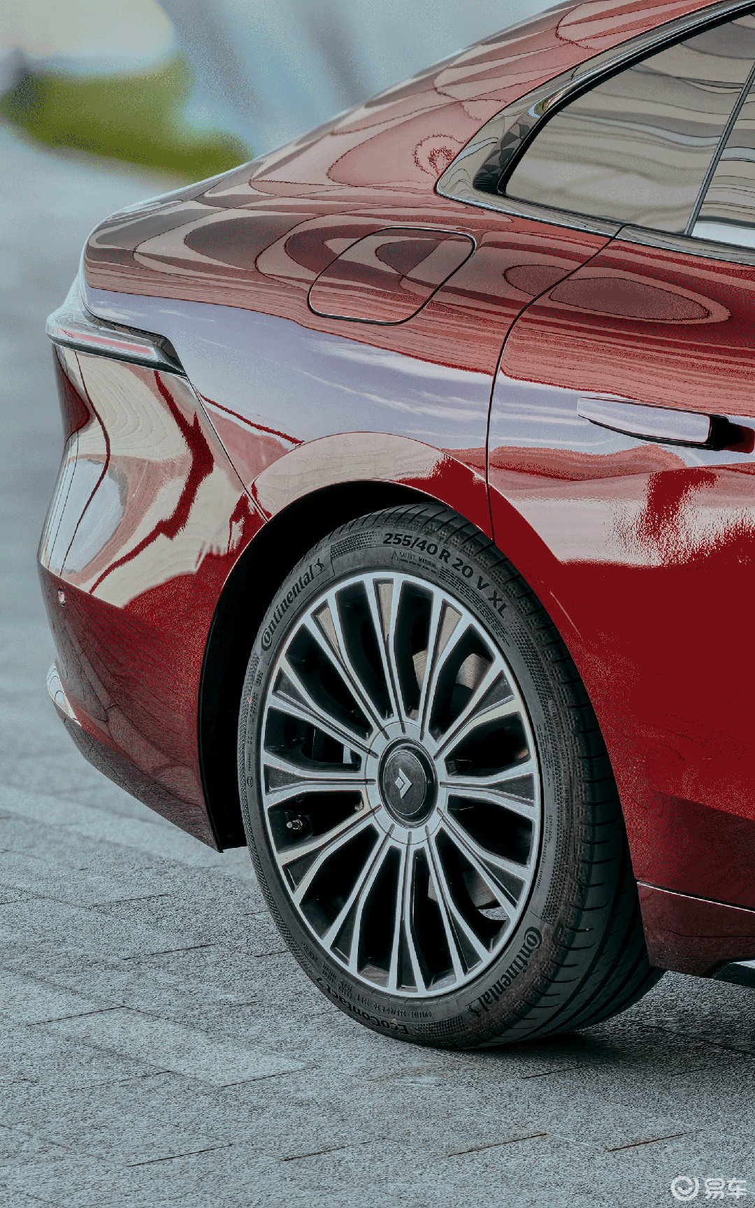 轮毂也搭载了悬浮式 LOGO,而且提供两款轮毂可选,标配的 20 寸 12 幅涡式轮毂显高端,另一款 7 孔碟式轮毂就显得很尊贵了。