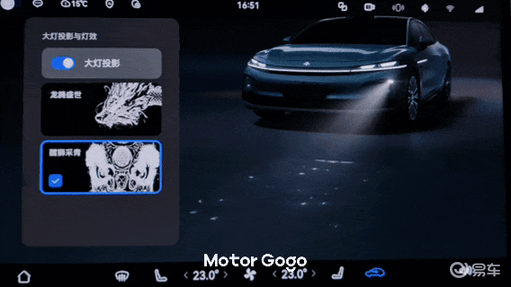 前大灯也配备了华为百万像素投影大灯,目前有 2 款投影灯语可选。