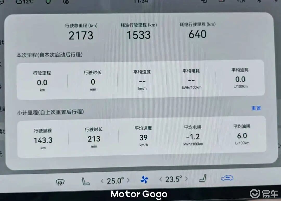 ○ 行驶143km,亏电油耗6L