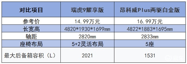 15万以内的SUV推荐:瑞虎9PK昂科威Plus空间表现,前者更适合大家庭