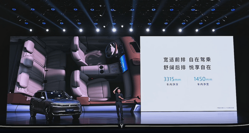 来到车侧,新车在原有大角度后倾的悬浮式D柱改成了三角形结构,从而让整车视觉重心落在车身五分之三处的黄金比例分割点,使得整车姿态更加高级豪华。车身尺寸方面,新车长宽高为4915/1960/1660mm,轴距为2960mm。空间方面,新车有4.8平米的使用空间,拥有81.5%的得房率。