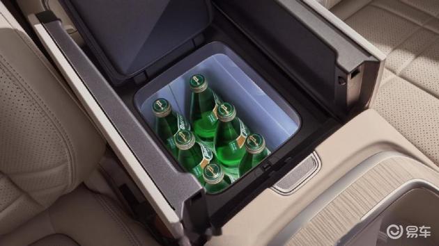 上面留有杯座,可以放置饮品、茶杯,还有一个-6℃-50℃的冷暖双用冰箱,可以实现一年四季的加热制冷需求,夏季可以冷藏饮料、食品,冬季可以对牛奶等饮品进行加热。还可以通过中岛的前后移动,灵活的沟通前后排的物品传递。