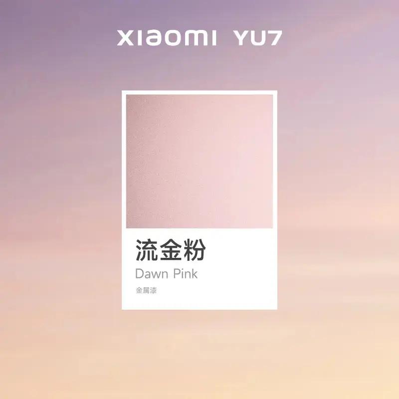 雷军在微博上表示,小米YU7一共有9种颜色,有跑车色系、时尚色系、豪华色系和经典色系。今天再介绍第5种时尚色系:流金粉 Dawn Pink。
