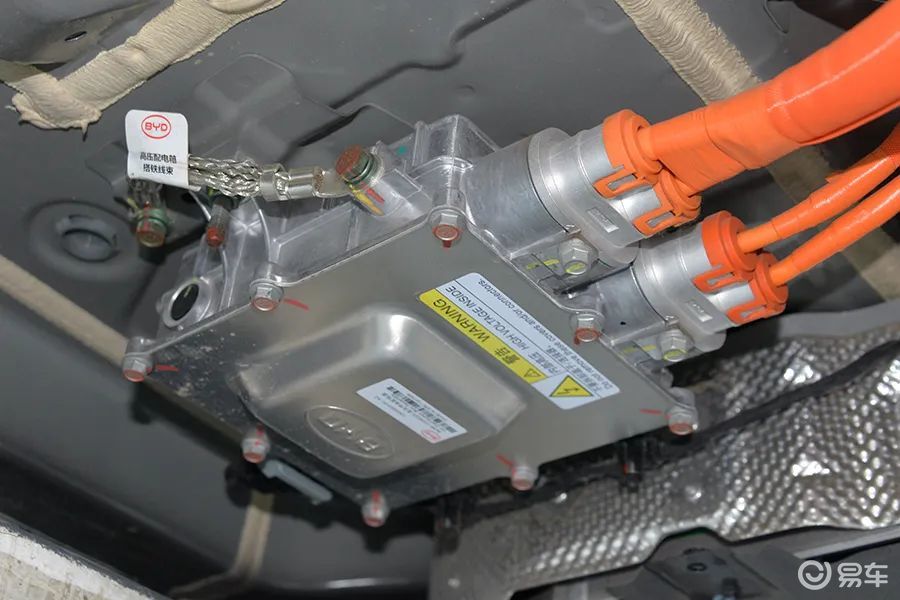 这辆车配有一块磷酸铁锂电池,供应商是比亚迪自己的弗迪。额定容量47.7安时,电压是384伏。这块电池没有水路散热或加温,依旧采用空调直冷散热和电阻丝加热,优点就是便宜,缺点是温度控制不如水冷均匀,并且几乎无法维修。