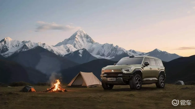 侧面整体造型硬朗,拥有显著的离地间隙,并配备了攀爬梯、置物箱及车顶行李架等越野配置。车身尺寸为长5100mm、宽1998mm、高1899mm,轴距为3005mm,整体尺寸与猛士917相近。