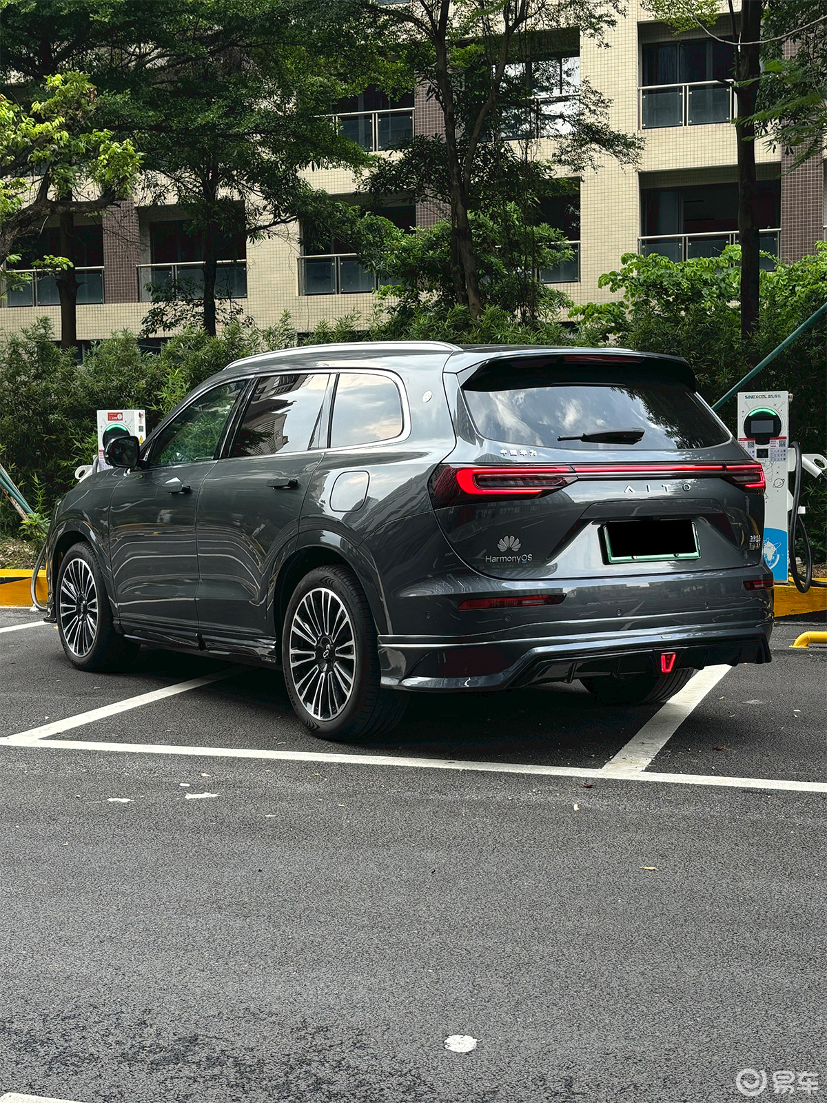 原厂轮毂中规中矩,这次直接上多辐式锻造轮毂,枪灰色涂装适配车身色调,精致又显质感;轻量化设计,兼顾颜值与性能,转动时仿佛自带 “光影特效”,让整车运动氛围再上台阶,跑起来都更带感。