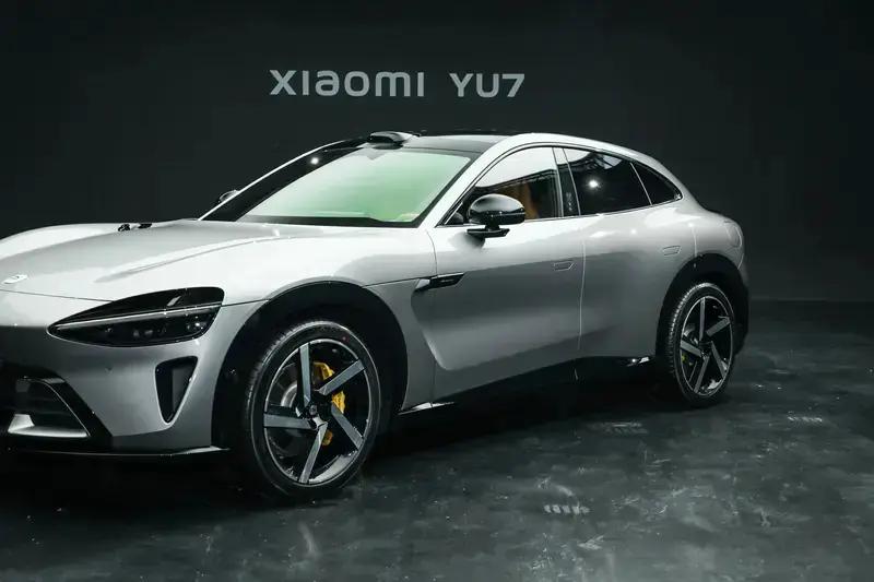 外观方面,整体延续了小米汽车家族式设计,整体造型偏向于运动风格的跨界SUV。前脸新车搭载了标志性的“水滴大灯”,并采用了镂空式设计,前包围造型也与小米SU7保持了高度一致。