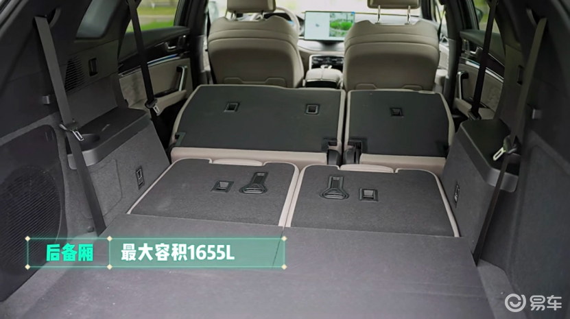 更为关键的是,两款车在空间布局上的思路截然不同。唐DM-i采用三排七座布局,强调多乘员承载能力,但在二排与三排空间上有所妥协,尤其在二、三排乘坐体验上较为局促。其后备箱常规容积仅为235L,放倒后排座椅后可扩展至1655L。
