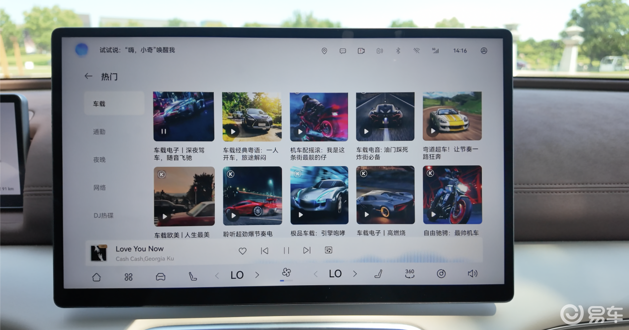 打开酷狗音乐和QQ音乐,都有会员,音质有区别,测试下来酷狗的更好,从蔡琴的歌到欧美流行音乐,我和摄像助理都能听出来,音质相当不错,13-19万这个价位确实是第一梯队,也是这辆车非常大的卖点。