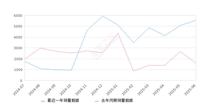 2025年6月,君越销量同比增长244.69%,环比增长9.5%;最近12个月中,君越销量在2024年12月达到最高,销量为5940辆。