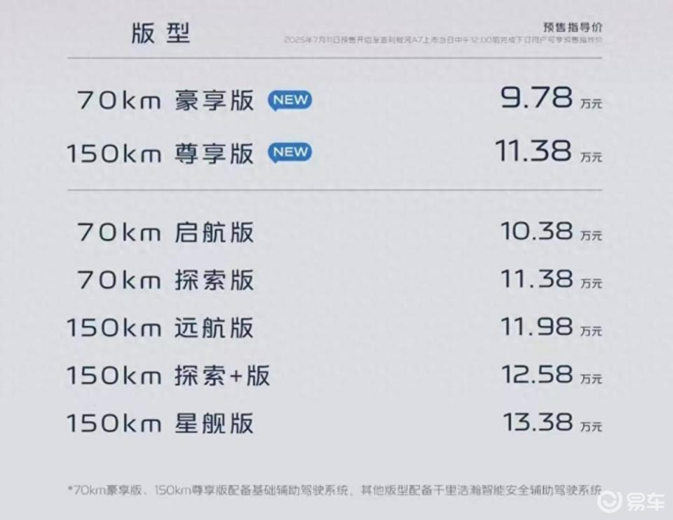 今天我们指定银河A7 2025款 1.5L 150km 星舰版:13.38万(预售价)和秦L DM 2025款 智驾版 DM-i 120KM卓越型(指导价13.98万)来做对比,看看哪款车更胜一筹!