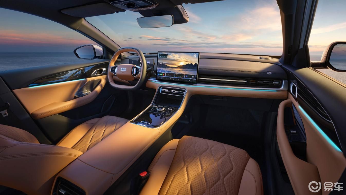 在内饰上,吉利银河A7则采用了环抱式座舱设计,“顶层皮革软包+中层木纹饰板+底层哑光金属”的用料组合,带来强烈的视觉冲击和触觉质感。同时配备0.029m²透光面积的后三角窗设计并配备音乐头枕、2360mm氛围灯、以及越级空间,营造出尊贵舒享的乘坐体验。