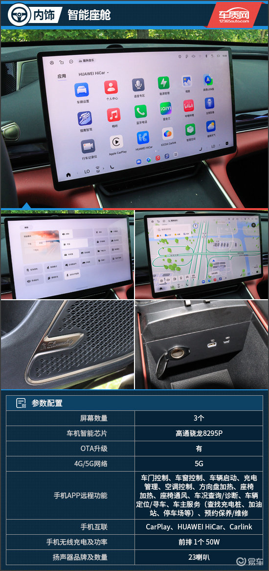 15.6英寸中控屏尺寸较大,并且黑边控制得合理,观感不错。车机系统搭载高通骁龙8295P芯片,算力强大,系统运行极为流畅。同时,手机互联支持CarPlay、HUAWEI HiCar以及Carlink,全面满足了不同手机用户的互联需求。值得夸赞的是,语音系统的表现与造车新势力们不相上下,其语音识别率高、响应快,还支持全场景连续对话和可见即可说,智能化体验相当出彩。