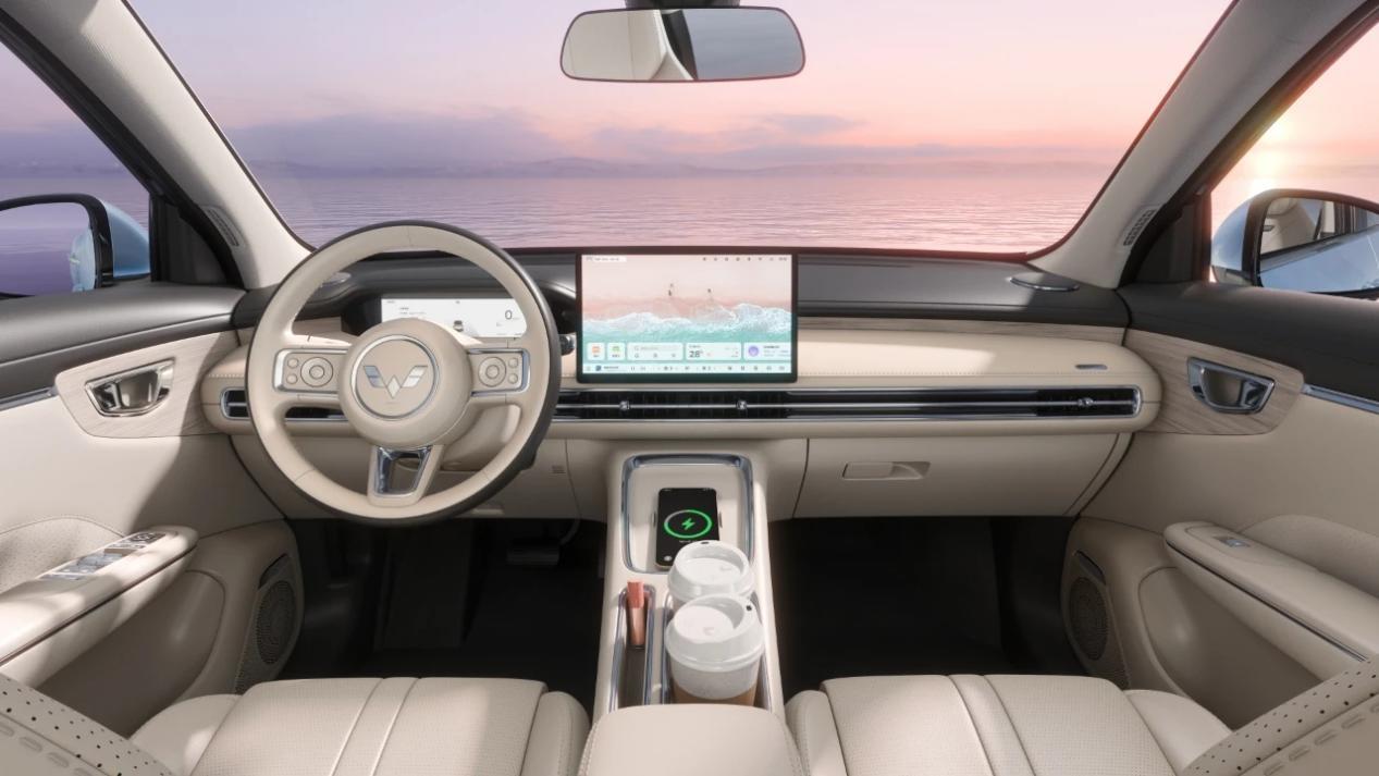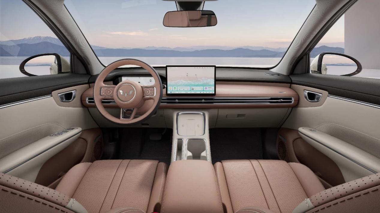 内饰方面,缤果S则是以静舍栖居美学作为设计理念,空间疗愈哲学也没有缺席。环抱式的中控台设计,整体颇具层次感,且带来了开阔的视觉体验。此外,8.88英寸全液晶嵌入式仪表和12.8英寸中控显示屏的运用,也赋予了座舱不俗的前卫科技氛围。而且提供暖棕/柔白在内的座舱配色可选,为了进一步提升了内饰档次,缤果S的用料也颇为考究,像起到点缀效果的高亮镀铬饰件、3D质感的木纹工艺都没有缺席,结合大量软质皮质材料包裹中控台,质感越级这点必须承认。