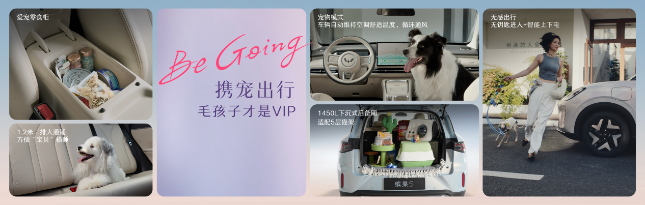 不仅如此,缤果S还给到3.3kW外放电功能、红绿灯读秒、540°全景影像、同级领先的宠物模式实现车辆自动维持空调舒适温度、循环通风、50W无线手机快充功能等多种功能,轻松满足美丽通勤、携宠出行、欢乐露营、密友出行四大高频场景。