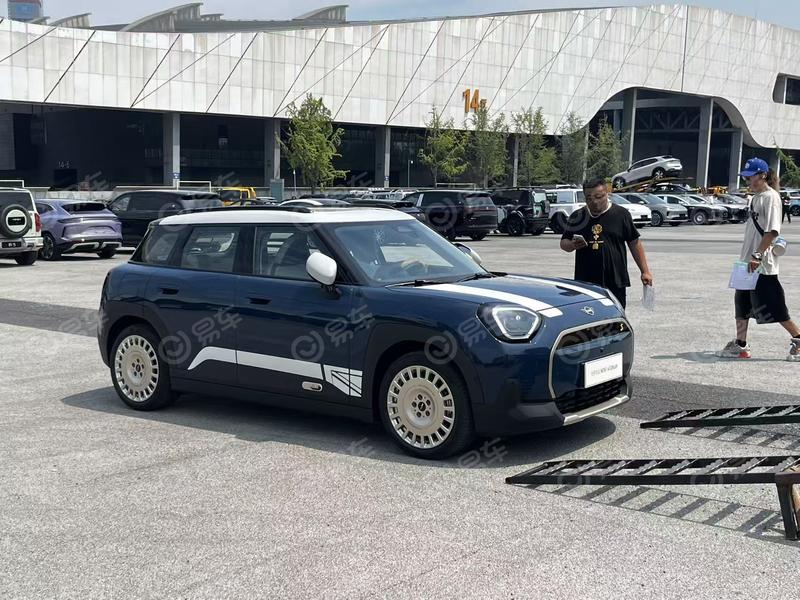 与此同时,我们在现场还拍摄到了全新电动MINI ACEMAN JCW,新车采用了红色车顶、红色后视镜以及红色拉花等个性化装饰来凸显运动感。