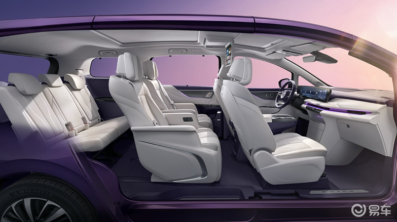 步入车内,全新“霞紫月白”内饰通过环绕车舱的极简线条、撞色设计与唯美的“向上生长”花纹绗缝,展现东方美学尊贵与典雅的同时,也彰显了车主的不凡品位。材质方面,车舱顶部运用大面积超细纤柔麂皮绒面料,在视觉上拥有媲美顶级手工皮具的豪华哑光质感,每平米超一亿根的绒毛密度确保了温润亲肤的触感。车门部位全系标配Smart Touch光感触控板,通过16层精湛工艺实现金属拉丝质感,将门锁、记忆等功能开关集于面板之下,将科技融入纯净美学。全车三排座椅皆使用北美超柔全粒面头层Nappa真皮包覆,同级唯一全系标配,触感如婴儿肌肤般细腻柔软。同级唯一的带冷暖箱礼宾灵动岛台同样全系标配,采用业内首创隐藏式电控滑轨,支持260mm大行程前后移动,不仅给前后排乘客带来便利,更能烘托内饰简约格调。新车还为乘客脚部所能触及的区域,铺上了同级唯一的澳洲进口13mm绒高羊毛脚垫,每平米1400克重的天然羊毛纱线,在提供舒适脚感的同时,也将车内的豪华氛围提升到新的高度。