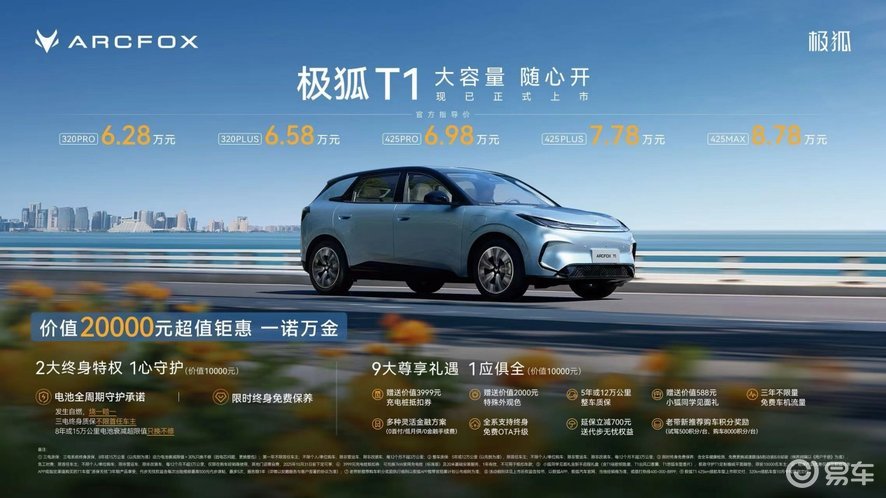 值得一提的是,即日起下订可享充电桩抵扣券、特殊漆色券等九重权益,425km版本上市即交付,320km版本将于10月中旬交付。
