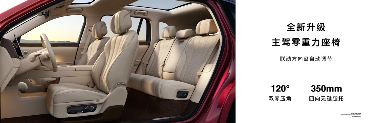 内饰采用对称式布局设计,配备16.1英寸3K悬浮中控屏搭配26英寸WHUD,更有68英寸AR-HUD[9],行车信息一目了然。副驾升级10.25英寸娱乐屏,并新增17.3英寸后排娱乐屏[10],新增组队出行与开门守卫功能[11],全家出行途中共享欢乐时光。