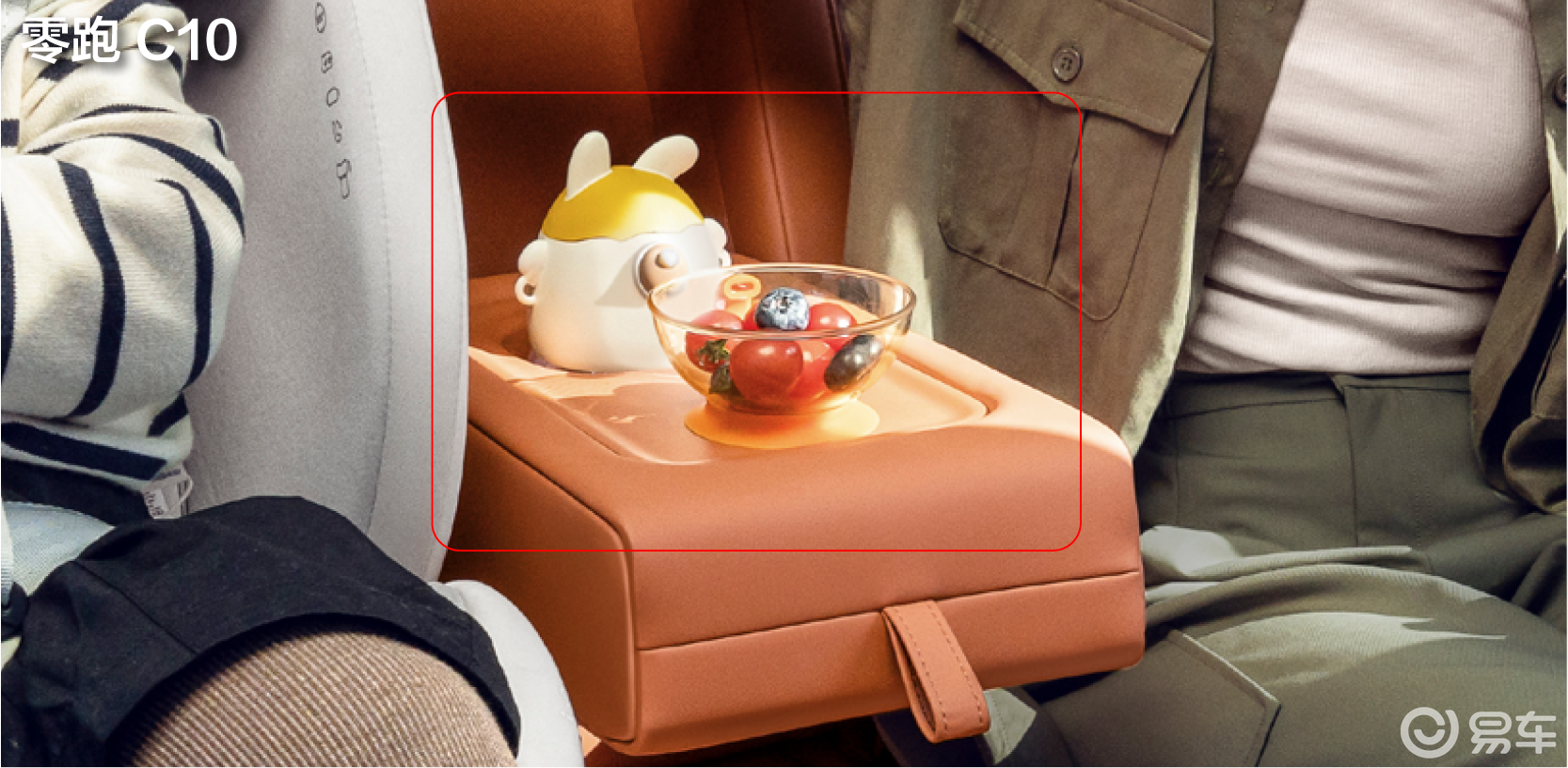 另一个是其为后排中央扶手特别设计的婴幼儿置物操作平台,不仅有大口杯托用来放奶瓶等,还支持吸盘碗的放置,可以说是移动的“宝宝餐桌”,对于在后排照顾孩子的妈妈来说很有帮助。