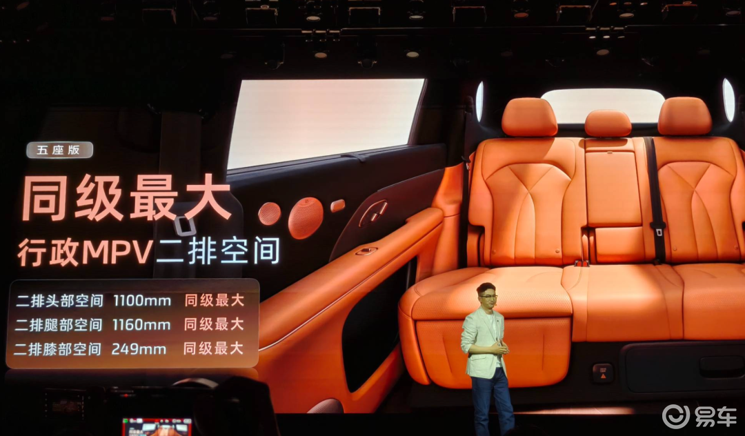 对于五座版本,前排头部空间有 1097mm,堪称「同级领先」;侧头部空间则有 101mm,智己称要比同为「8系」的友商车型多出 40%。另外,二排的头部、腿部和膝部空间,智己称,均是「同级最大」。