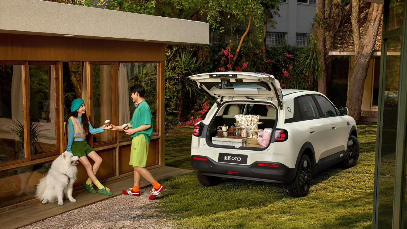 大格局:多元储物超能装,魔法空间灵动驾乘。2700mm超长轴距带来85%的超高得房率;70L智能电动前备箱(支持8种开启方式,含车外语音开启) 与375-1450L可拓展超大后备箱,二排座椅下方还暗藏35L抽屉式储物盒,更设有4个1/4生态螺纹接口实现个性化拓展。天生的操控基因,让QQ3也能开出灵动感。后置后驱+四轮独立悬架,50:50轴荷比,开的更稳,过槛不晃。5.2米转弯半径,C-EPS无刷电机转向,麋鹿测试成绩稿达77km/h。整车历经川藏线2200公里实地验证,在怒江72拐路段实现丝滑过弯;搭载领先的十合一高电机,420km续航版本支持16.5分钟极速快充(30%-80%),6.6KW外放电功能,即便全家满座出行,也能尽享舒适。装得下生活,也装得下远方,驾乘平权,自在随心。