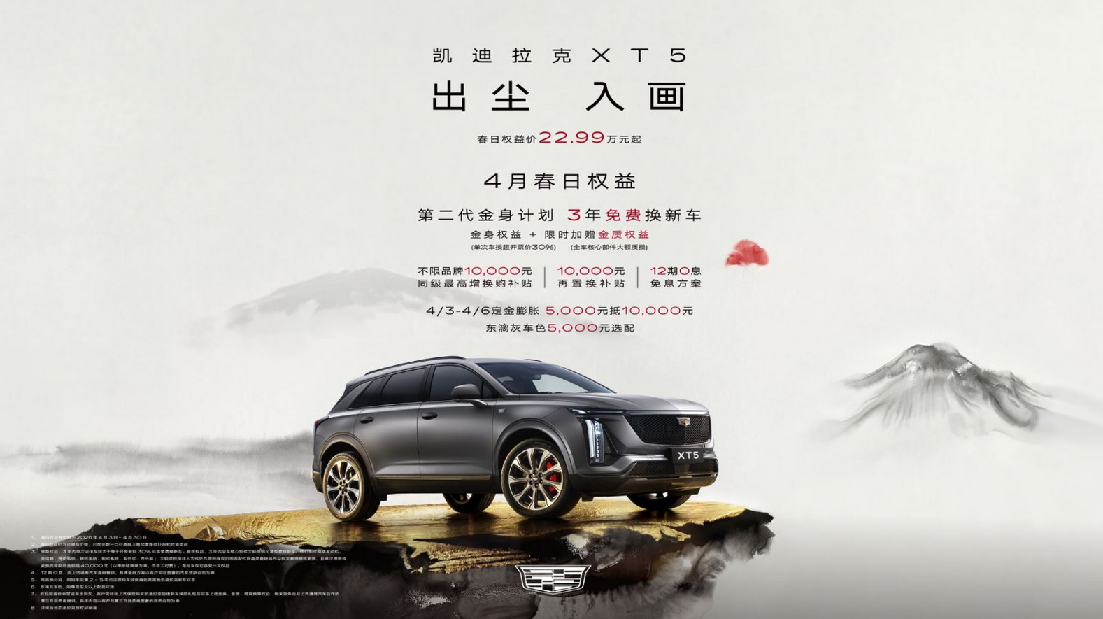 山水有清音,春风拂新境。2026年4月3日,凯迪拉克“2026春季艺术大赏”在广西阳朔盛大启幕,在这场融合自然诗画与先锋美学的盛典中,豪华全路况SUV凯迪拉克XT5迎来重磅春日焕新,全新专属车色「东漓灰」惊艳首发,第二代“金身计划”携“金质权益”全面升级,叠加限时春日购车礼遇与极具竞争力的权益价格,凯迪拉克以艺术为媒、以科技为骨、以诚意筑底,再次刷新豪华全路况SUV市场的价值标杆。