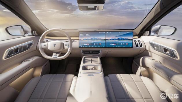 领克900的座舱与深蓝S09大同小异,配备了12.66英寸全液晶仪表和30英寸中控屏,中控屏有一半已经到了副驾位置,加上支持分屏操作,实际上与深蓝S09的主副屏效果基本一致。同样配备了50W充电板、30英寸6K后排娱乐屏,硬件上基本与深蓝S09相差不大。不过没有深蓝S09的创意中岛设计,二排座椅无标配零重力,旋转座椅实用性不高。