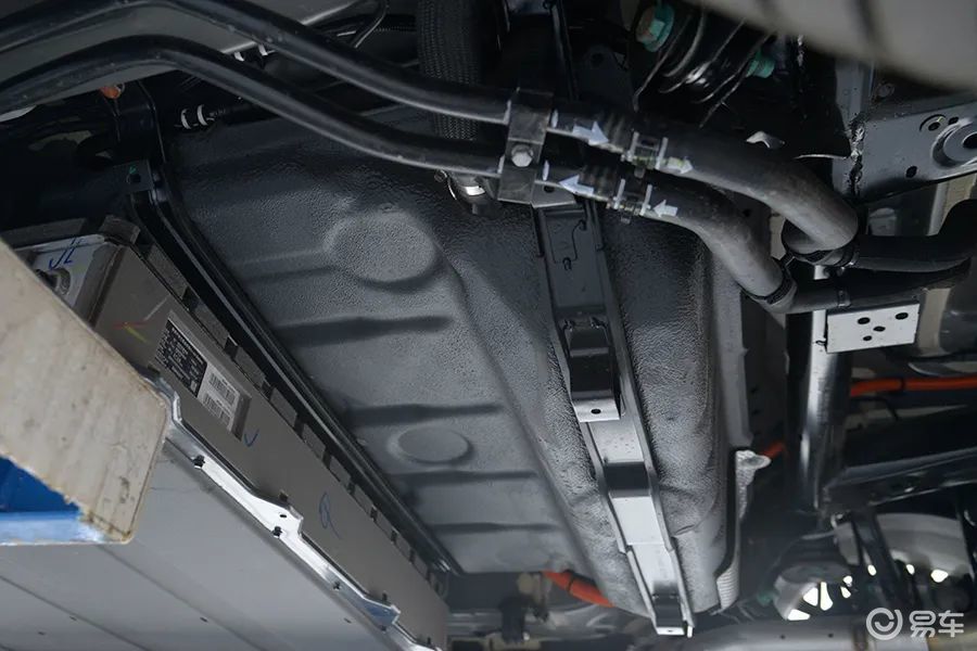 这辆新款汉DM-i依旧采用铁油箱,但样式与老款截然不同。油箱就像抽屉一样,直接插在了电池上方,显然是优化了空间,油箱下探部分与电池后沿,还预留了相当大的空间,大概率是为了装更大的电池。