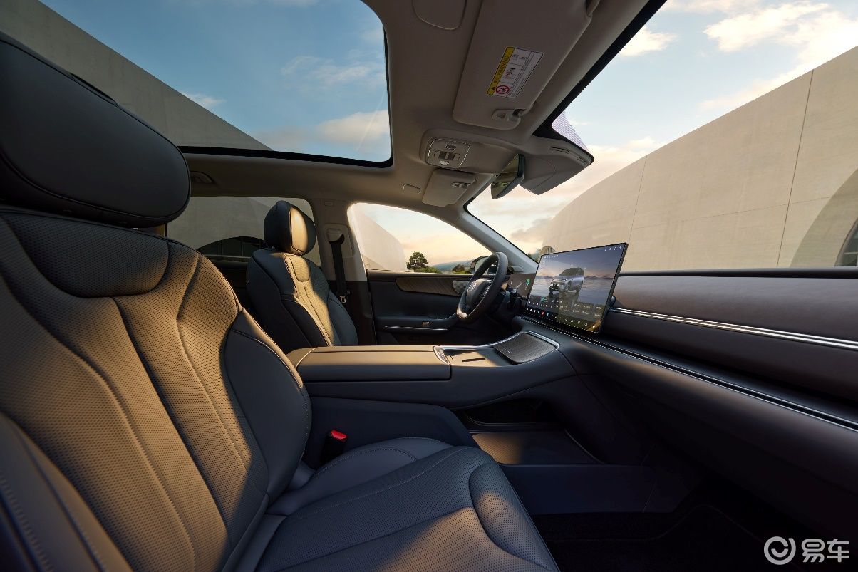 中控区域升级为同级最大17.3英寸悬浮式超清屏,领先同级Model Y、小鹏G7等一众车型,2.8K分辨率与6mm超窄边框带来沉浸式视觉体验。下方16.3L超大镂空储物空间嵌入柔光照明灯,兼顾实用性与仪式感。环绕式256色瀑布流光氛围灯可随音乐律动变换,配合贯穿式电动隐藏出风口与智能香氛系统,构建起“视、听、触、嗅”四维感官空间。