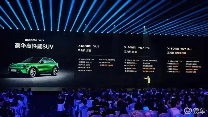 动力方面,新车拥有三种版本,均搭载V6s Plus电机,其中,双电机高性能四驱版最大马力690匹,峰值功率508kW,零百加速3.23秒,最高时速253km/h。续航方面,小米YU7标准版搭载96.3度电池包,CLTC续航835km。四驱版车型搭载101.7度电池,CLTC续航770km。高性能四驱版车型同样搭载101.7度电池,CLTC续航里程760km。官方表示,新车15分钟最快补能620km。