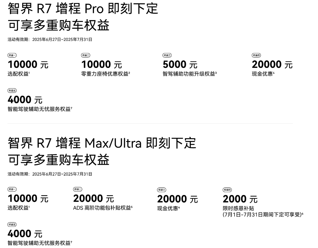 当前,现款智界R7推出了极具吸引力的优惠政策,除了“2万”现金减免外,叠加置换补贴后,性价比超高,入门版实际入手价进一步下探,让更多消费者能够轻松拥有这款高品质的SUV。对于着急提车的用户来说也是一个不错的选择。