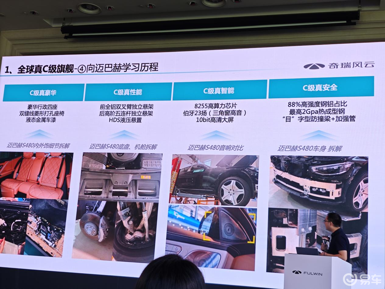2.打造这款车,直接买了一台迈巴赫S480,从内饰的设计,双拼色和双缝线菱形打孔的座椅都做了学习,鸣笛喇叭也学习了迈巴赫,放在了保险杠前可以有效的避免声音传到驾驶室。以及前备箱零部件的打胶隔音,打的都是很贵的胶。