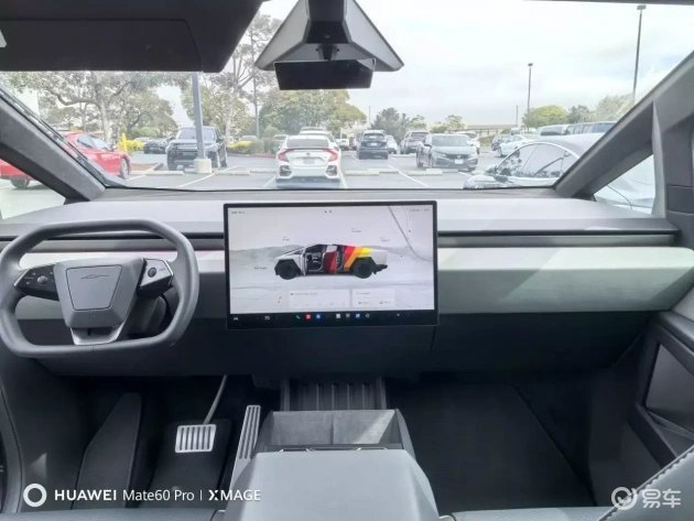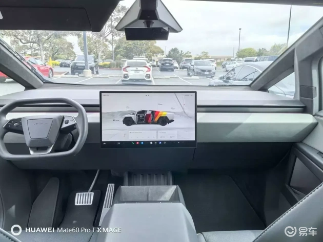 进入座舱,整体感觉相比外观略显平淡。特斯拉在Cybertruck上将极简风格发挥到了极致。与Model 3和Model Y的木纹装饰相比,Cybertruck的内饰几乎没有任何突出高级感的元素,仅由大面积的淡灰或深灰色软质皮革构成。无论称之为“科幻风”还是“极简冷淡风”,对于一台售价7至10万美元的豪华车,其内饰的豪华感略低于预期,更多呈现出一种精心设计的“简约”与“素净”。