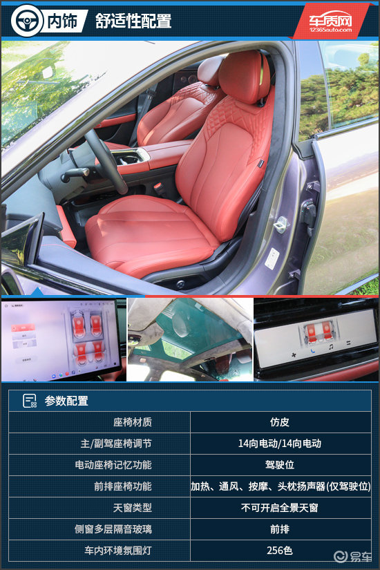 乘坐空间方面,身高为178cm的体验者分别进入前/后排,此时腿部和头部均有不错的余量。同时,后排座椅配备了三个头枕,内部填充物柔软适中,枕靠在上面较为惬意。