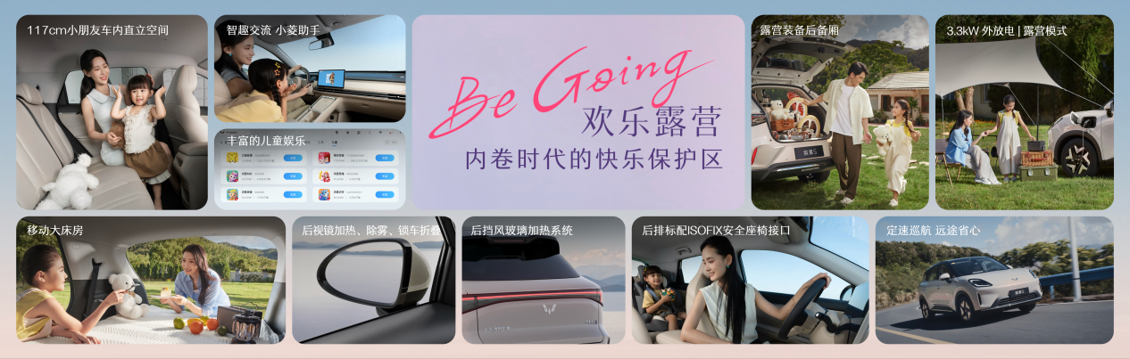 不仅如此,缤果S还给到3.3kW外放电功能、红绿灯读秒、540°全景影像、同级领先的宠物模式实现车辆自动维持空调舒适温度、循环通风、50W无线手机快充功能等多种功能,轻松满足美丽通勤、携宠出行、欢乐露营、密友出行四大高频场景。