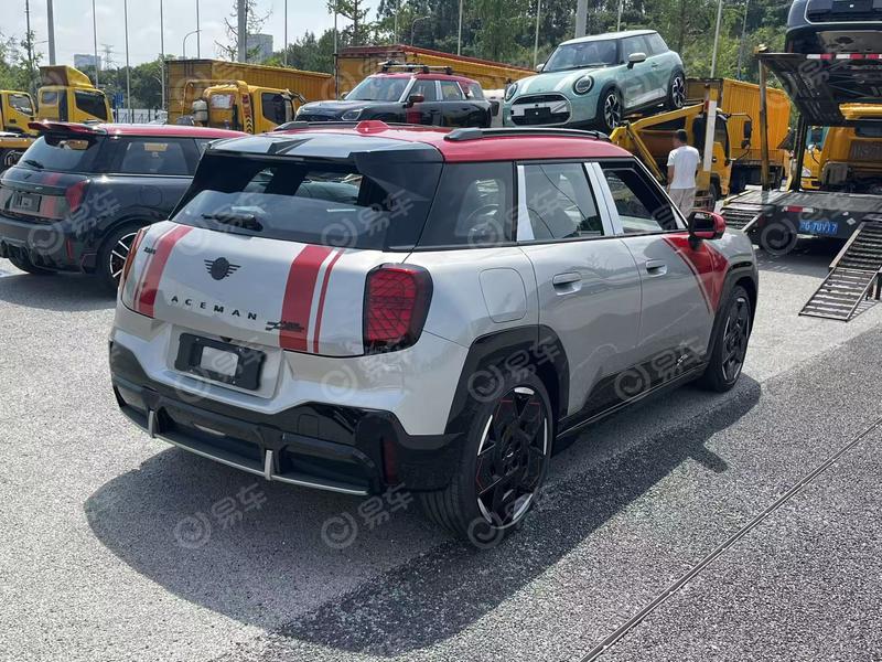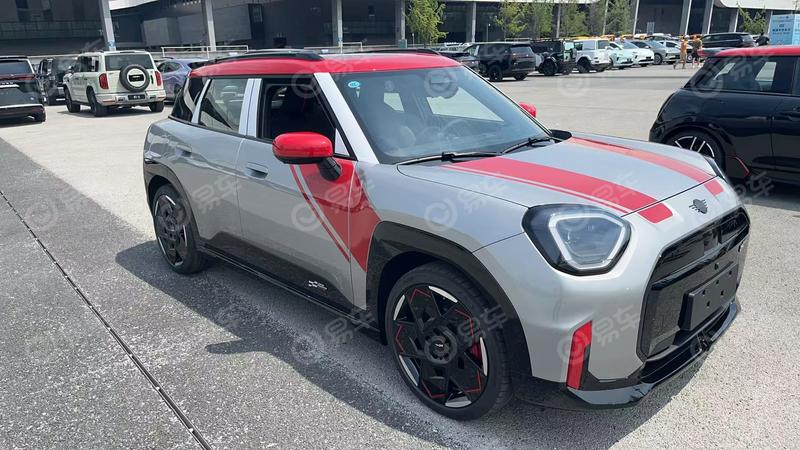 与此同时,我们在现场还拍摄到了全新电动MINI ACEMAN JCW,新车采用了红色车顶、红色后视镜以及红色拉花等个性化装饰来凸显运动感。