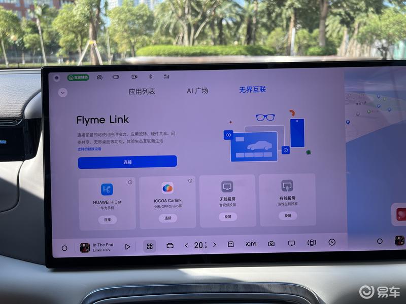 在生态方面,Flyme Auto 2更加开放。针对车载应用少的问题,Flyme Auto 2提供了移动空间,常用网页可以直接收藏到应用列表,保存后,后续应用列表就能快速进入应用网页。进入AppleMusic、Steam等网页,就可以听音乐、玩游戏。在手机互联生态方面,Flyme Auto 2支持与、魅族、小米、oppo、vivo、华为、苹果等主流手机的互联功能,针对carlink的手车互联,Flyme Auto 2还做了界面的适配,并支持有线和无线投屏,switch也可以连接到车机。