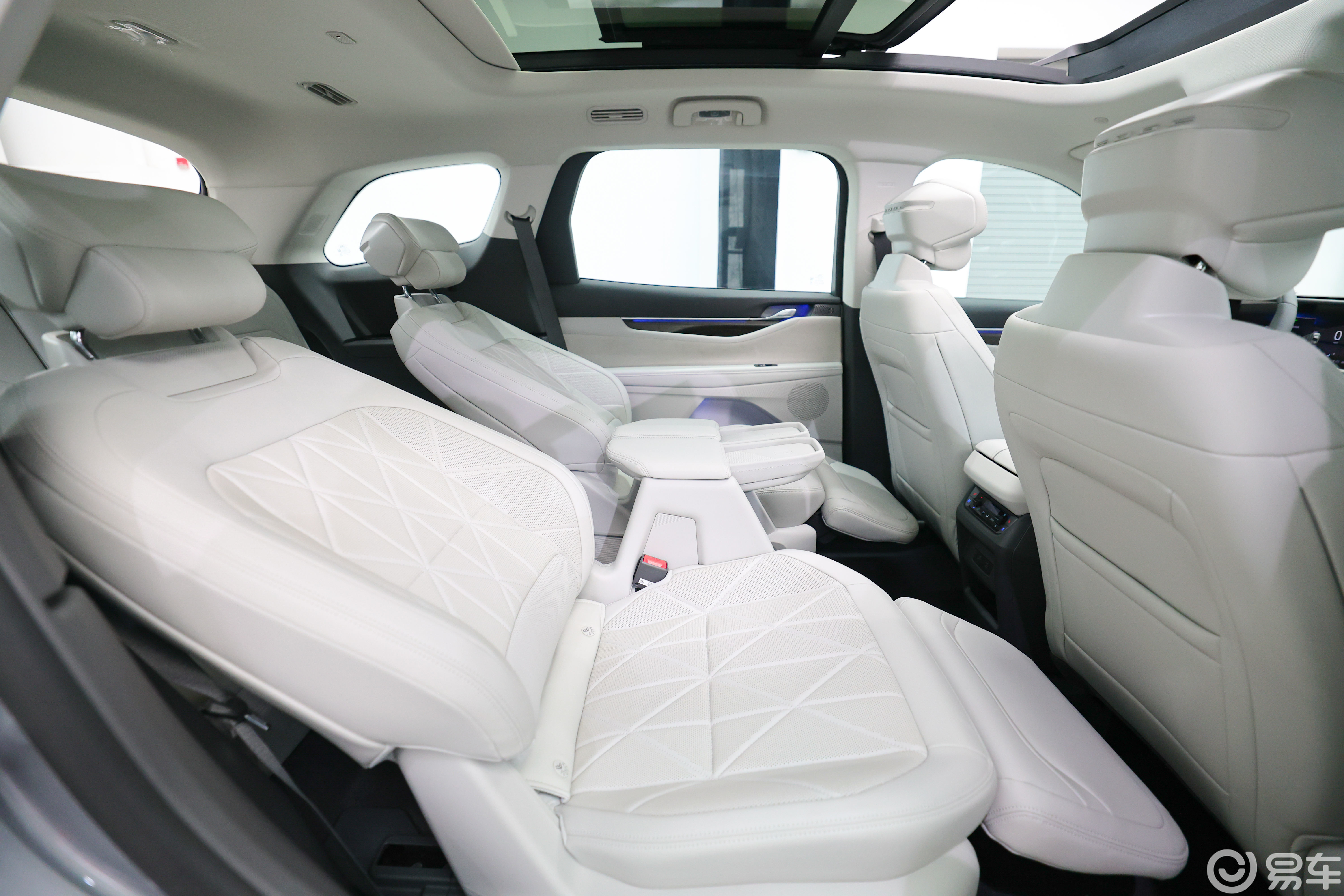 既然都说到了透气,不同于普通车型只照顾前排的做法,新款锐界L真的是合资大七座SUV中唯一从中配起即配备方向盘加热和二排座椅加热的车型,诚意拉满。无论是第2排还是前排座椅的调节项目以及它的配置丰富度更好一些。要是选择了2-2-3的布局,还是至尊和旗舰车型,第二排也可以享受无线充电,也有展开的腿托,可以一键躺倒,舒舒服服出行,完全就是豪车的配置。而且第二排也有200毫米的过道宽度,上车下车更便捷。当然至尊和旗舰车型还有B&O音响,这静谧性配上高级别的音响,能有剧院般的感受。全系标配的全景天窗,开启后通透感暴增,一家人出行都可以更加轻松惬意。