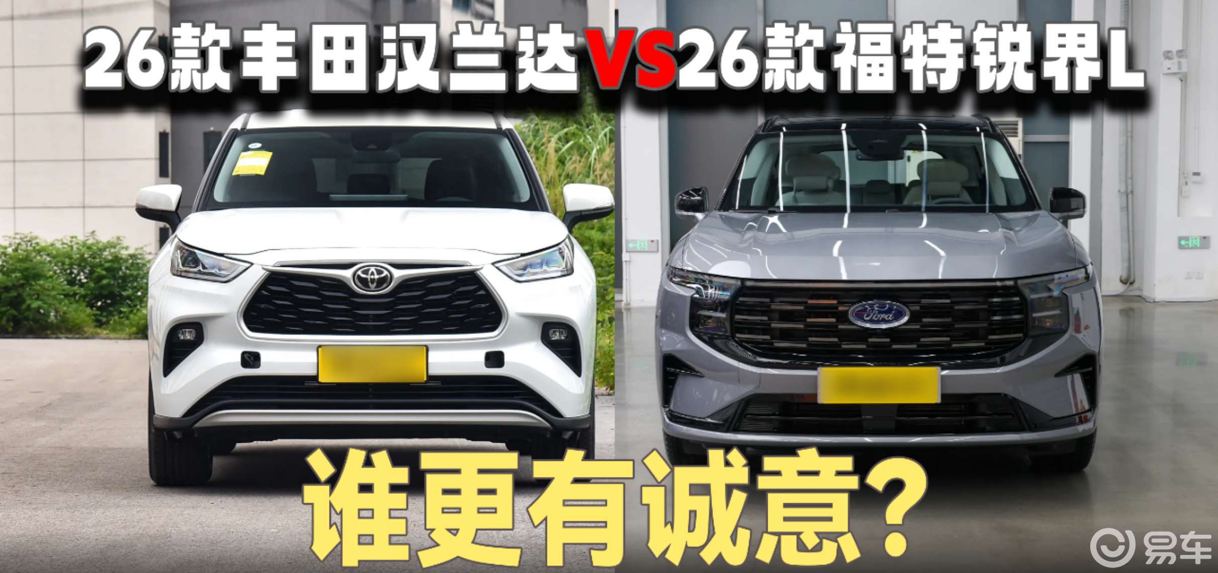 先来说汉兰达,作为新款车型,它的变化其实不大,外观没有变化,只是新增车身配色,取消了顶配车型。最大的变化就是车机方面,尤其是这个15.6英寸的屏幕,所以算是非常常见的年度小改款。而新款福特锐界L的变化就要多了不少,推出了2.0T EcoBoost® E混动四驱七座旗舰型,一步到位升级了半苯胺全粒面豪华真皮座椅,从中配车型开始就配备方向盘加热和第2排座椅加热。而且混动旗舰车型新增了HUD,豪华型至尊型和旗舰型新增540度透明座舱陡坡自动开启功能,福特家的Co Pilot360智行驾驶辅助系统也开始全系标配,都拥有L2级智能驾驶辅助,可以说它的升级面相比于重点在屏幕变化的汉兰达要明显很多,接下来咱们就具体看看。