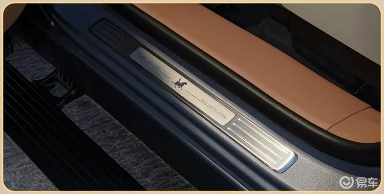 车内采用六座布局,重点强调家庭使用场景,车内采用了棕米双色的Nappa真皮内饰。前排头枕上绣有“马到成功”字样,方向盘饰条和车机系统界面也更新为专属主题风格,车辆还新增了马啸声效作为锁车提示音。
